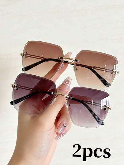 两副复古无框方形金属镜框眼镜,时尚男女通用眼镜,适合日常通勤、海滩、旅行、街头摄影,可个性化定制