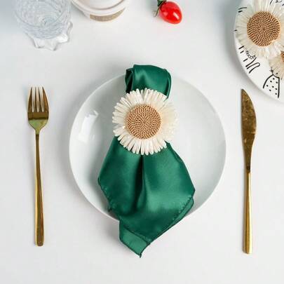 2-12个手工人造雏菊餐巾环,编织餐巾架,适用于餐桌、婚礼、家庭聚会(向日葵) - 彩色 - 查看 1