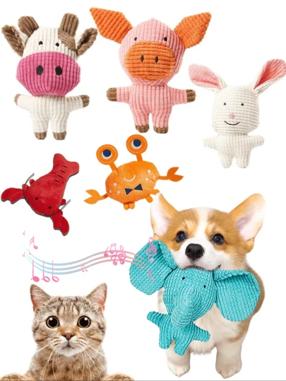 2件装毛绒咀嚼玩具,适用于猫狗,经久耐用,耐咬,采用优质材料制成,内置发声装置以吸引宠物注意力,时尚动物造型,可爱的奶牛和兔子。 - 彩色 - 查看 6