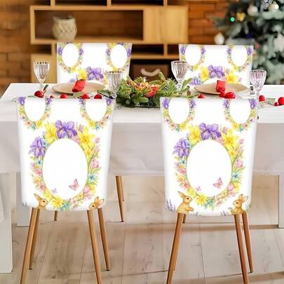 2/4/6件装复活节主题印花椅套,图案包括可爱的兔子、复活节彩蛋和花环。实用又美观的椅套,轻松营造节日氛围,适用于餐厅、酒店、庆祝活动和复活节装饰,是理想的复活节礼物。 - 彩色 - 查看 9