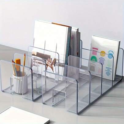 2/4 杂志收纳盒套装,4 个隔层,方便垂直和水平放置,非常适合放在书架和包包上。多功能桌面文件整理盒,办公必备,书架隔板,模块化收纳方案,透明设计/毕业季礼物/返校季礼物