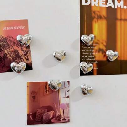 2/5个迷你银色心形磁性冰箱贴,INS风磁铁,可爱冰箱装饰,便签纸,家居装饰,适用于冰箱、金属门、铁制品,礼品