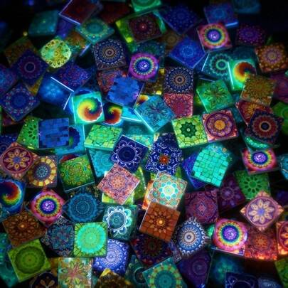 2.5x2.5厘米方形夜光马赛克玻璃砖,每包150克/300克,彩色混合,适用于马赛克艺术、DIY工艺品、客厅、浴室、花园等家居装饰 - 艺术花卉图案,创意艺术项目,DIY马赛克材料 - 夜光混色 - 查看 7