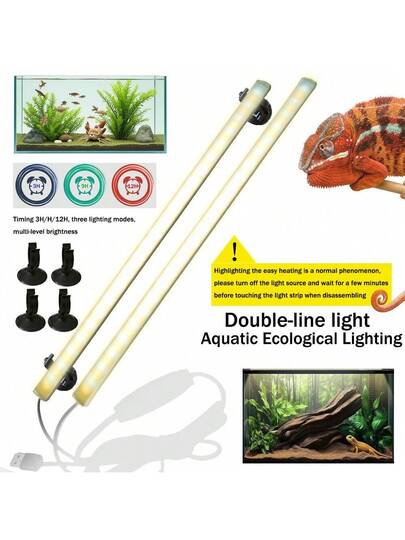 二合一 USB 双头照明灯,双色温两栖动物照明灯,可调光定时器,3 种照明模式,吸盘夹固定在水族箱外部,不防水,适用于室内两栖动物和鱼缸照明(鱼、龟、变色龙、蜥蜴) - 黑與白 - 查看 7