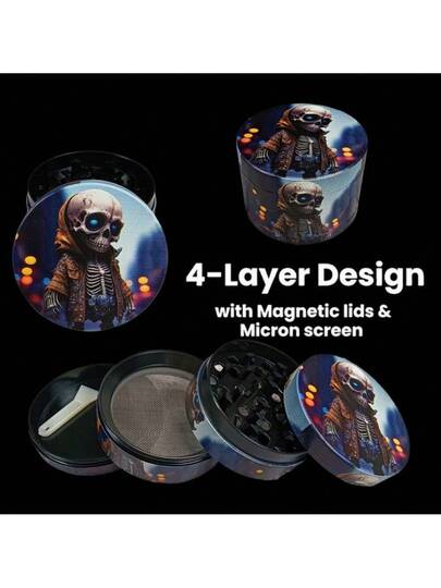 2英寸骷髅香草研磨机盐杵粉碎机研钵香料研磨机香草烟草芽便携式4节手动锌合金烟草生草研磨机香烟吸烟配件礼物 - 顱骨 - 查看 1