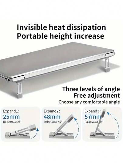 2个迷你便携式铝合金笔记本电脑支架,可折叠,方便携带,散热性能强,防滑锌合金笔记本电脑支架,带支架脚,适用于Air Pro手机桌面支架 - 查看 4
