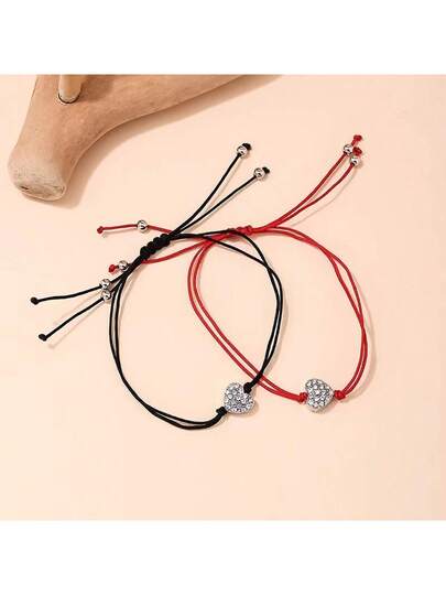 2入組時尚新款鑽石鑲嵌情侶結繩手鍊,男女適用 - 彩色 - 查看 2