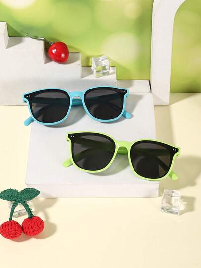 2副男女童时尚眼镜,适合4-8岁儿童,撞色镜框装饰,轻巧PC材质镜框,休闲方形款式,适合拍照和日常佩戴,附带眼镜盒