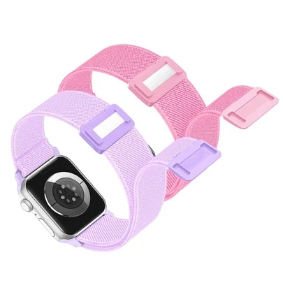 2条装尼龙弹性磁吸式替换表带,兼容 40mm 41mm 44mm 45mm,手表 - 燻衣紫+粉紅 - 查看 1