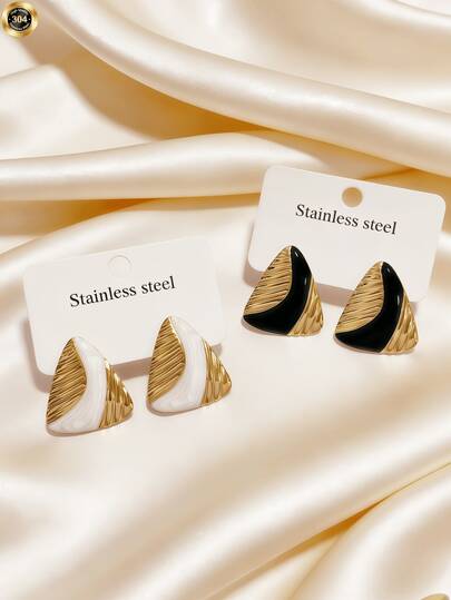 两对黑白三角耳坠,2026新款,法式复古时尚不锈钢材质,低过敏性耳环,奢华高端个性化线条设计风格,非常适合作为情人节礼物、母亲节礼物、生日礼服配饰、海滩波西米亚风、狂欢节饰品,不锈钢首饰 - 彩色 - 查看 2