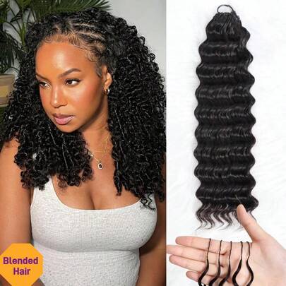 20英寸卷曲羽毛钩编假发,40克深卷曲钩编辫子接发,女士专用,无结预分离设计,方便编织,自然黑色,合成纤维与人发混合,轻盈可重复使用。
