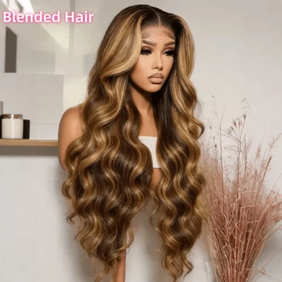 200% 密度挑染假发,真人发混纺,渐变色波浪卷蕾丝前假发,34 英寸(13x4)高清透明蜜金色波浪卷蕾丝前假发,P4/27 色蜜金色波浪卷蕾丝假发,5x5 预剪裁,即戴即用,无需胶水,预先拔毛,自然发际线带婴儿发。 - S4/27 - 查看 13