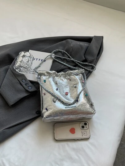 2023新款時尚鑽石肩膀斜挎包 - 銀色 - 查看 2
