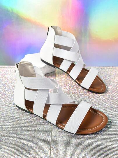 2024 最新款罗马花卉印花沙滩平底凉鞋,适合女士春夏穿着 - 白色 - 查看 2