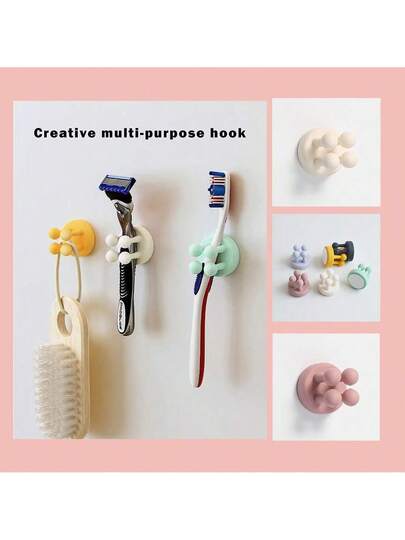 2025家居新品推荐-免钉硅胶无缝四爪墙钩,浴室牙刷牙膏剃须刀粘钩 - 彩色 - 查看 2