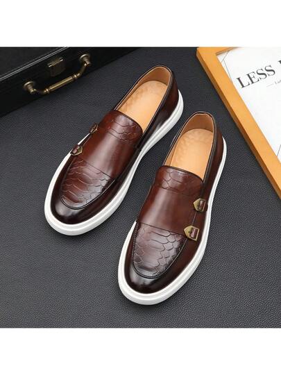 2025春季新款休闲皮鞋男士,时尚英伦风男士夏季透气平底鞋 - 棕色 - 查看 1