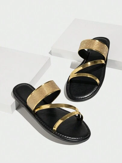 2025 年夏季新款时尚女士凉鞋和拖鞋,适合户外、沙滩、旅行、休闲穿着,防滑 TPR 鞋底 - 金色 - 查看 1