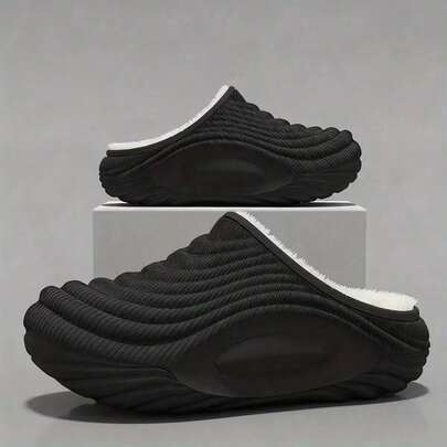 2026 必备男女通用套脚拖鞋,纯黑色,简约时尚,适合居家、休闲、办公及秋冬季节穿着。柔软羊毛内衬保暖舒适。EVA 鞋底带足弓支撑设计,有效吸收冲击力,提供缓冲。易于清洁。可爱小物 - 彩色 - 查看 2
