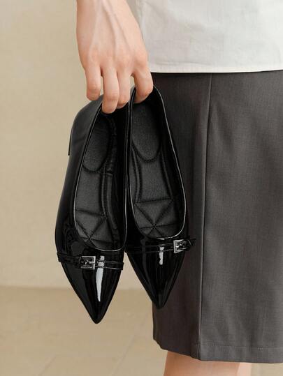 2025新款尖头漆皮平底鞋,酒红色和黑色,优雅法式风格,适合春秋季
