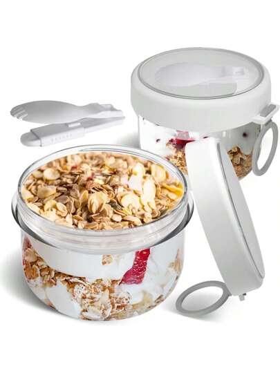 20盎司带盖隔夜燕麦片容器,带盖和勺子的燕麦片容器,防漏隔夜燕麦罐,方便携带的早餐杯,学校用品 - 彩色 - 查看 10