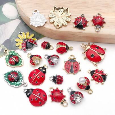 20个珐琅瓢虫吊坠,款式多样,可用于珠宝制作,包括DIY手链、项链和钥匙扣等。