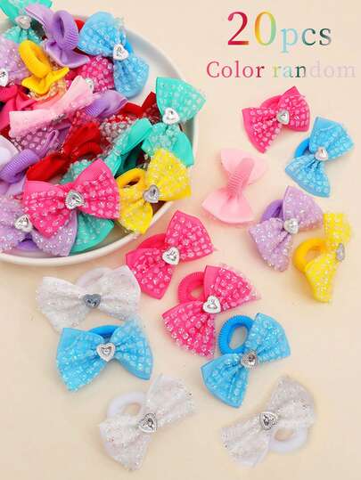 20个装女孩可爱亮片网纱蝴蝶结发圈,心形蝴蝶结发圈,适合日常生活和上学佩戴 - 彩色 - 查看 1