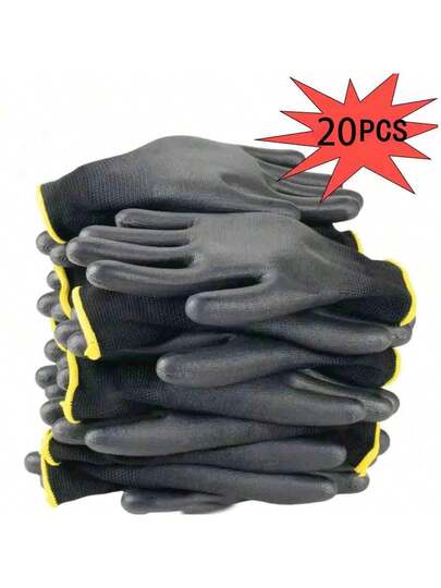 20只装PU涂层安全工作手套,适用于建筑、木工和园艺,工业防护手套,维修手套,防滑、耐磨、耐用、增强抓握力,适合草坪护理和户外使用,保护手部。 - 多色2 - 查看 5