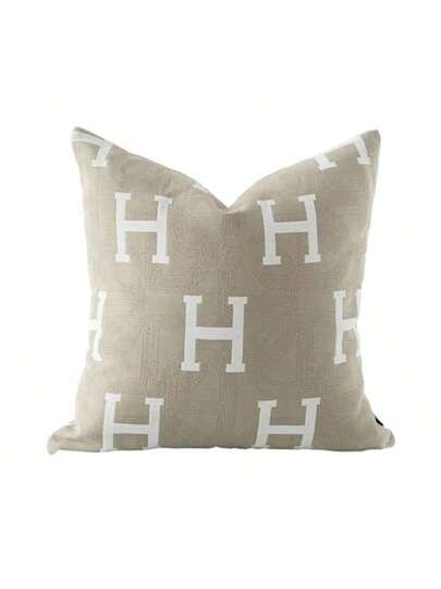 20x20'' Inches Throw Pillow Cushion Cover Beige H Letter Embroidery Modern Fashion Style Couch Sofa Pillow Cover For Living Room Bedroom