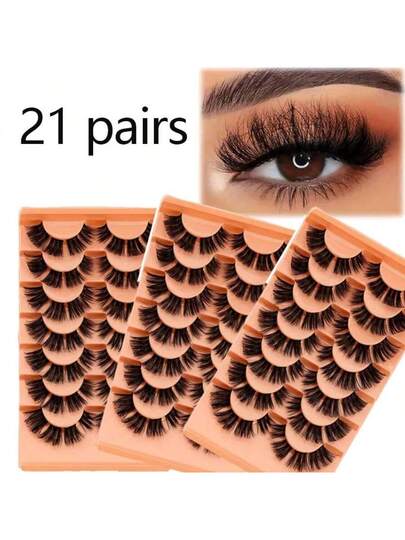 21-Pair False Eyelash Set Fluffy Cat-Eye Lashes Black False Eyelashes Features A Fine Band For Comfortable Wear
