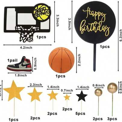 21件套篮球主题蛋糕装饰套装,包括篮球、篮球鞋、五角星,适用于婴儿派对、生日、篮球主题蛋糕装饰