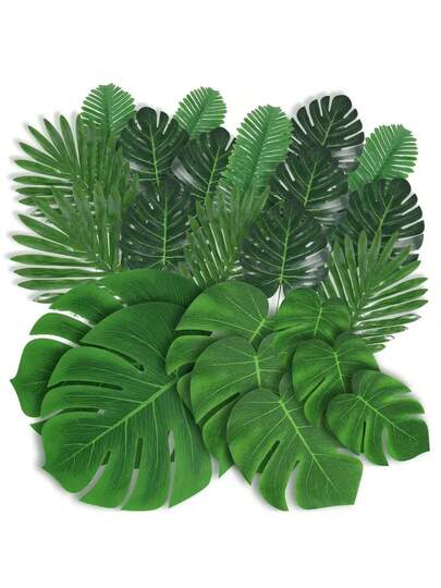 21 片棕榈叶和藤条 - 7 种各式绿色人造热带棕榈叶和茎,适用于丛林主题婚礼、生日派对、宴会桌装饰 - 綠色 - 查看 1