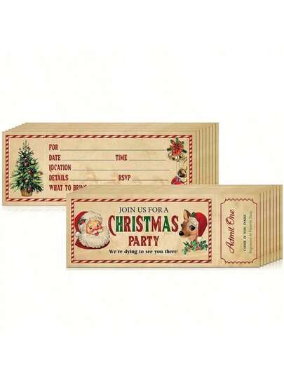 24 张圣诞派对门票邀请卡圣诞老人填写空白邀请函圣诞节冬季假期生日婴儿洗礼 - 彩色 - 查看 6