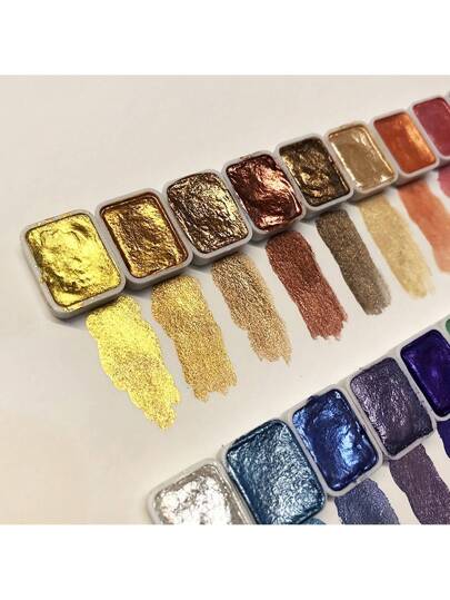 24 色珠光水彩颜料套装 - 适用于艺术家的固体金属闪光铁盒调色板、日本渐变水彩画、用于混合和分层的艺术用品、返校用品、学校用品 - NEW 1set - 查看 10