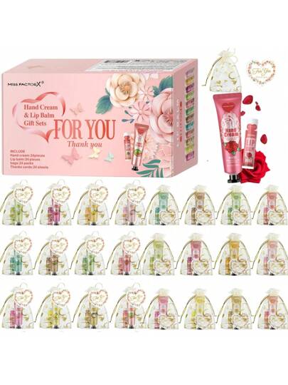 MISS FACTORX 24入組唇膏和護手霜禮品盒,婚禮小禮物,適用於女性、朋友,配有愛心袋和感謝卡,非常適合企業送禮 - 24套/盒 禮物套裝 - 查看 4