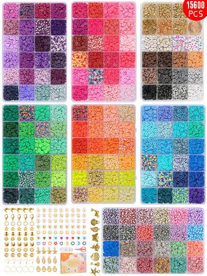 2400/4800/7200/9600/12000/15600入組聚合物粘土珠套件,帶有粘土間隔珠子的扁平圓形 Heishi 珠子,可用於手鍊製作,黑色的石珠子可用於珠寶首飾製作,適合生日派對、感恩節、聖誕節、新年禮物 - 軟陶 - 查看 7