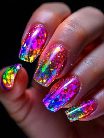 6. 24片彩虹宝石美甲贴纸,方形,Y2K风格