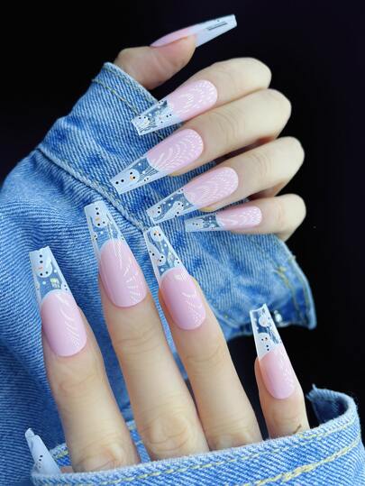 24入組長款棺材雪人圖案假指甲和1入組指甲銼和1張膠帶 - 彩色 - 查看 7