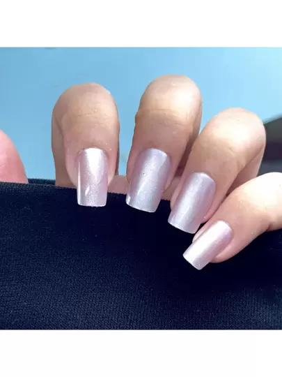 24入組短方形閃亮貓眼粉紅美甲貼片設計,附1入雙面膠帶和1入指甲墊,適用於日常時尚和派對活動 - 彩色 - 查看 1