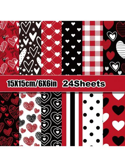 24入組情人節彩色背景相簿紙,假日裝飾diy分類材料紙,手帳紙各種圖案,組織紙,紙剪,單面手帳,6*6英寸 - 彩色 - 查看 1