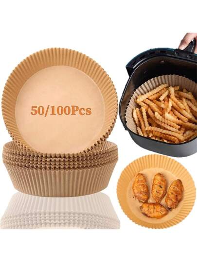 25/50/100 件、空气炸锅一次性纸垫、空气炸锅一次性纸垫、不粘空气炸锅烘焙纸、圆形空气炸锅纸垫、烘焙微波炉不粘烘焙纸、厨房配件、工具 - 多色 - 查看 2