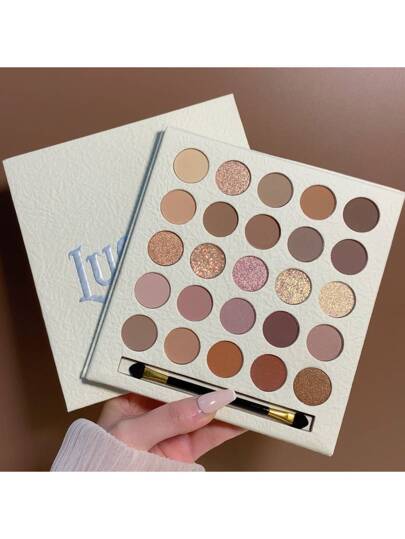 25色眼影盤,1入組持久不易脫妝眼妝產品帶化妝刷 - 白色 - 查看 1