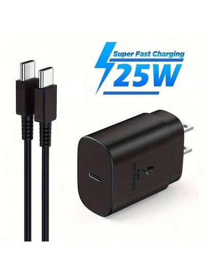 25W USB-C 快充充电器,配备 USB-C 转 USB-C 快充线,兼容三星 Galaxy S24、S23、S22、S21、S21+/S21 Ultra、S20/S20 Ultra、Note 20 Ultra、Note 10 以及其他 16/15/Pro/Pro Max 设备,支持快速充电。 - 美規A型插(110-127V) - 查看 3