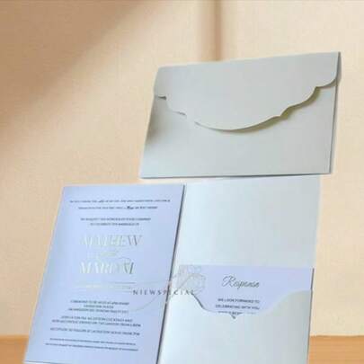 25个三折口袋式婚礼邀请函信封,简约信封,适用于订婚、洗礼等场合,DIY邀请函,普通邀请函,口袋式邀请函,定制邀请函,圣诞贺卡 - 象牙色 - 查看 10