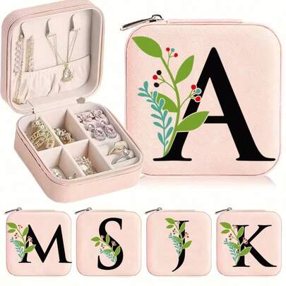 26字母图案拉链简约便携旅行首饰盒,印花戒指耳环收纳盒,方便携带