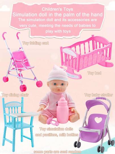 26厘米仿真娃娃玩具,可模拟喝水和排尿的迷你娃娃,娃娃推车玩具套装,适合女孩和儿童。 - 粉色 - 查看 10