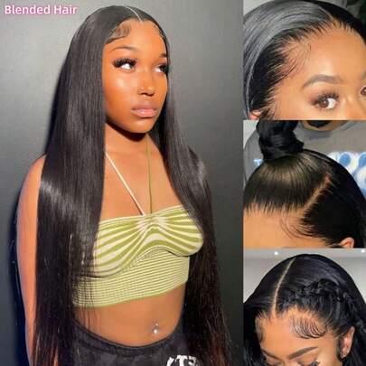 28英寸蕾丝前假发 - 13x4渐变棕色至金色高光直发,无需胶水,无缝设计,200%密度,适合派对、度假和日常佩戴 - 自然色&黑色系 - 查看 10
