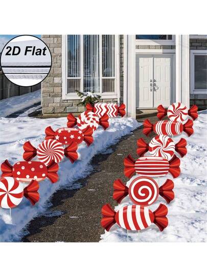 2D平面圣诞糖果草坪花园装饰牌,12个装 - 瓦楞硬塑料材质,节日庭院装饰,适用于小径和节日户外装饰 - 彩色 - 查看 1