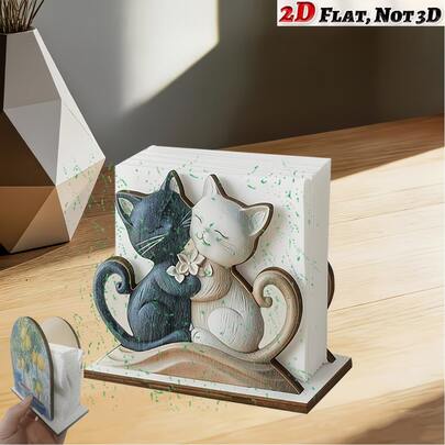 2D平面单件装餐巾架装饰,黑猫白猫亲吻图案,乡村风格纸巾盒,餐巾托盘,鸡尾酒餐巾架,餐巾夹,餐巾架,复古农舍圣诞桌面摆件,适用于餐桌、餐厅、酒吧、酒店、咖啡桌、咖啡馆、家庭厨房台面