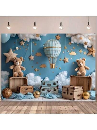 2D平面,1件装,旅行主题生日派对背景横幅,浅蓝色底,白色云朵和热气球图案,涤纶材质,适用于泳池派对、生日派对装饰、人像摄影背景,不含羽毛,家居厨房派对用品 - 1pcs - 查看 4