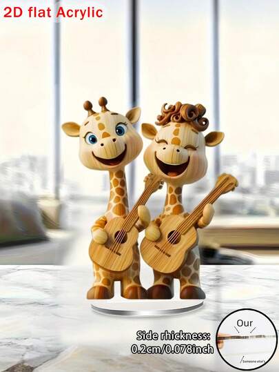 2D 亚克力吉他长颈鹿摆件 - 现代动物主题桌面装饰,独特礼物,家居或办公摆件,设计新颖,工艺精湛,2D 平面设计,涵盖 11 个节日,办公用品,办公桌配件,母亲节礼物,毕业礼物,毕业纪念品,办公桌摆件